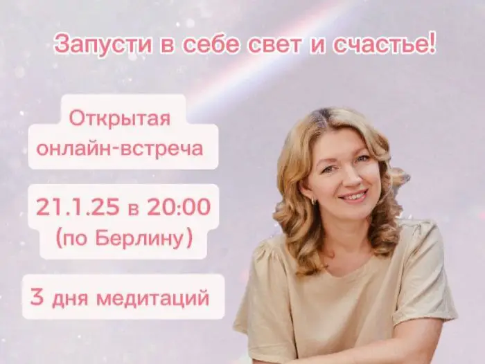 Запусти в себе свет и счастье!От alex.lichtenfeld@gmx.de / 21.01.2026 Родные мои, уже сегодня мы с вами встречаемся здесь для более глубокого понимания того, как нам двигаться и развиваться в 2026 году! Очень жду встречи! По Москве это только будет 22:00 часа. Проходите по этой ссылке на канал в телеграмм. https://t.me/natalialight11/294
